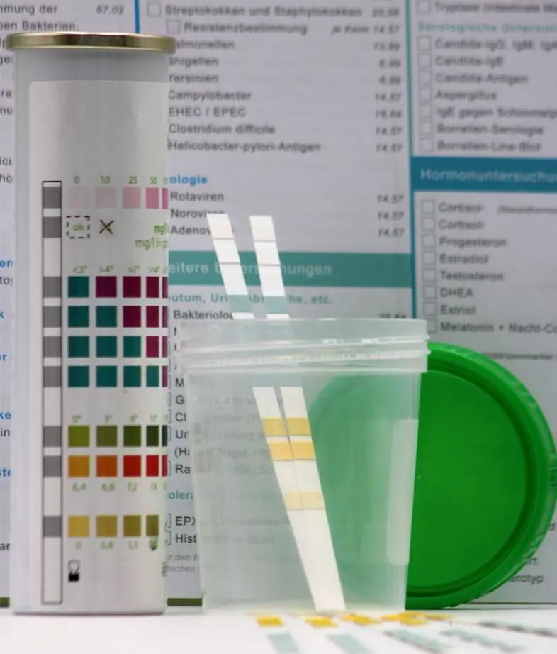 Zur Verbesserung der diagnostischen und therapeutischen Sicherheit führe ich bei Bedarf Laboruntersuchungen durch: Großes und kleines Blutbild, Leber- und Nierenwerte, Elektrolyte, Diabetes-Check, Entzündungswerte, Cholesterin, Harn- und Stuhluntersuchungen. Die Ergebnisse ergänzen die ganzheitliche Diagnostik.